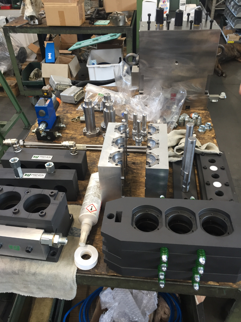 Delivered to an Italian Company leader in the production of cosmetic bottle 3 moulds for NISSEI ASB 70 DPH injection-stretch blow-moulding machine (ISBM one step) for the production of PET bottles Mould features: Cavities: 10 Bottle volumes: 50 -30-15 cc. Hot runner: with thermal gates manufactured by Preven The design of these moulds have been studied to have parts in